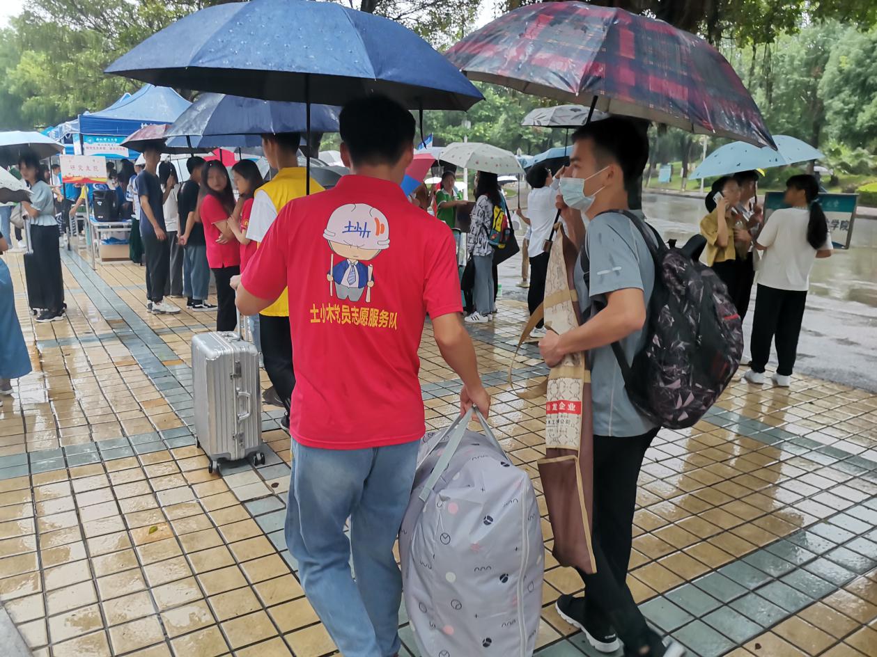 在新生到来之际,各位党员志愿者接过他们的行李,带领新生到各宿舍楼下学院的报到点,指引他们完成信息录入、钥匙领取等工作后帮助他们把行李搬上宿舍。志愿者们在路上还向新生介绍学校、学院的基本情况,答疑一些常见的校园生活问题。另外,学院还派出党员作为迎接新生车辆上的随车讲解员。随车讲解员们在回学校的路上为新生和家长们介绍学校基本情况,宣传学校的一些政策等,同时提醒他们做好防范,谨防上当受骗等。