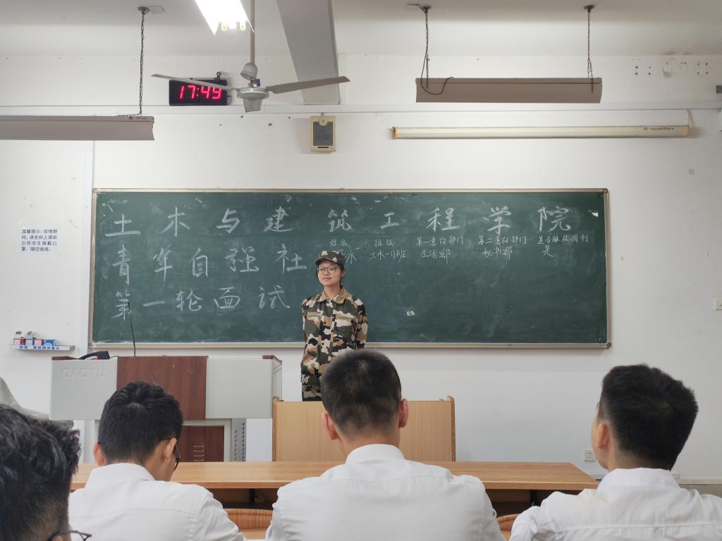 在此次招新活动前夕,社团通过QQ空间、微信公众号等方式进行宣传,由青年自强社社长、副社长等人前往雁山校区进行招新宣讲。招新期间,各部门成员分工合作,各司其职,接待员们热情地为新生们服务,面试官们在面试室里等候新生的到来。面试新生在面试时对答如流,彰显着他们加入社团的决心,以及希望投身于公益事业的热情。