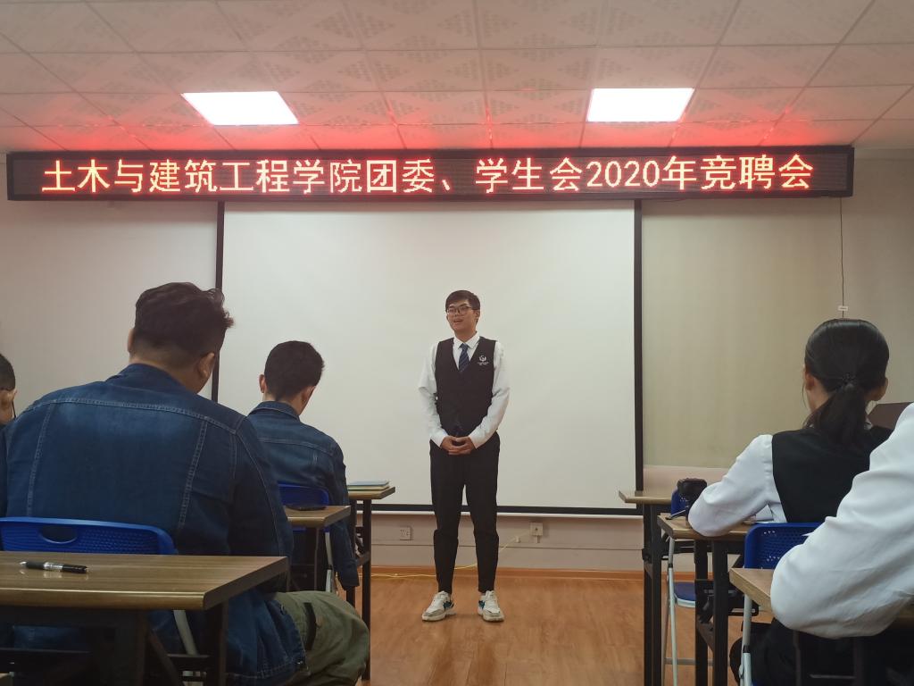 大会开始,何立广同学对大会致辞,强调竞聘的公平、公开、公正原则并鼓励广大团委、员工会成员积极参与竞选,以自身能力争取心之所向的职位。接着,竞聘同学依次上台,说明想要竞聘的职位和介绍竞聘理由、自身能力、工作经历和将来规划。老师根据相应岗位的工作内容对竞聘同学进行提问,同学们皆对答如流,将自己对工作的了解分享给大家。最后,团委副书记安邦国对大会进行点评,告知同学们责任的重要性,同时预祝每一位同学都能在未来工作中有所收获。