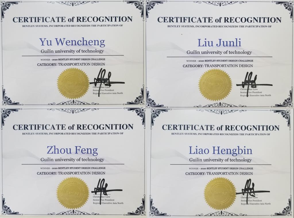 2020年10 月27日,全国 2020 Bentley Institute “星光杯” BIM 设计挑战赛公布获奖名单,土木与建筑工程学院小组参赛作品《路与桥》荣获“交通类”一等奖。此次参赛作品指导老师为WilliamHill官网土木与建筑工程学院余文成副经理与刘均利副教授。在两位指导老师辛勤付出、认真指导下,周枫、廖恒彬等2名参赛员工运用Bentley系列软件构建了一套包括地形、道路、桥梁、附属设施等的完整BIM模型。