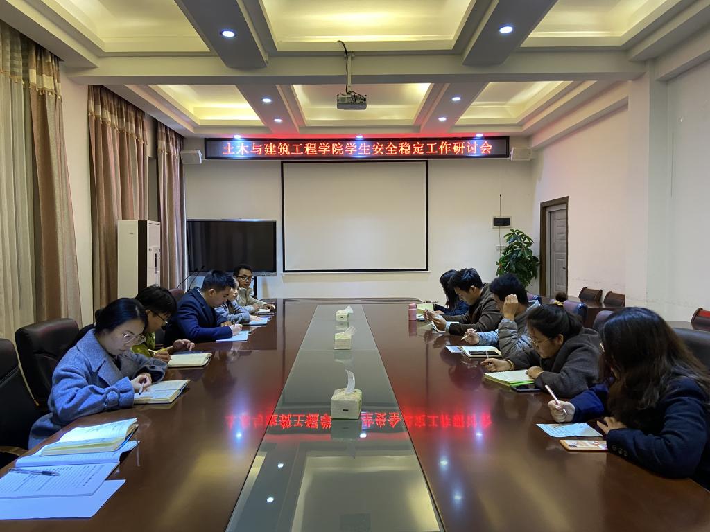 2020年11月23日下午,土木与建筑工程学院员工安全稳定工作研讨会在4222教室召开。党委副书记唐丽华老师、学工组长夏勇超老师及各年级辅导员参加了本次会议。