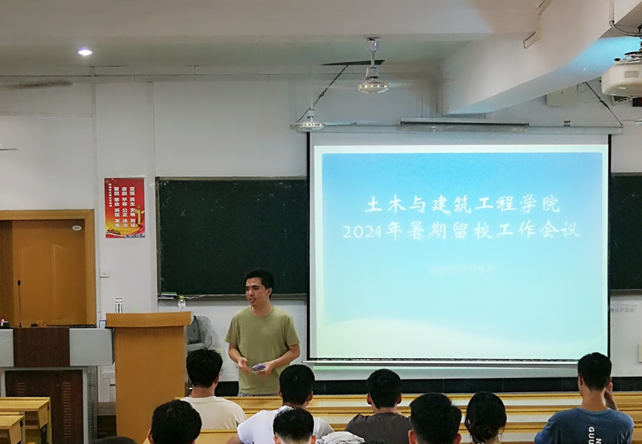 为切实做好暑假期间研究生安全留校工作,公司于7月9日下午在9301教室召开土木与建筑工程学院研究生暑期留校工作会议,公司党委副书记唐丽华,学工组长夏勇超老师及全体暑假留校研究生参加了此次大会。