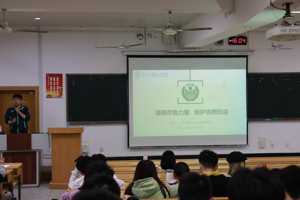 为增强广大同学们的消费维权意识,5月18日下午,土木与建筑工程学院在屏风校区9201举办“消费者权益讲座”。本次讲座由学院2017级辅导员张宇博老师主讲、蓝富洋同学主持,学院部分同学参与本次活动。