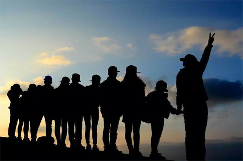 黄翠娟(右二)与同学登上猫儿山