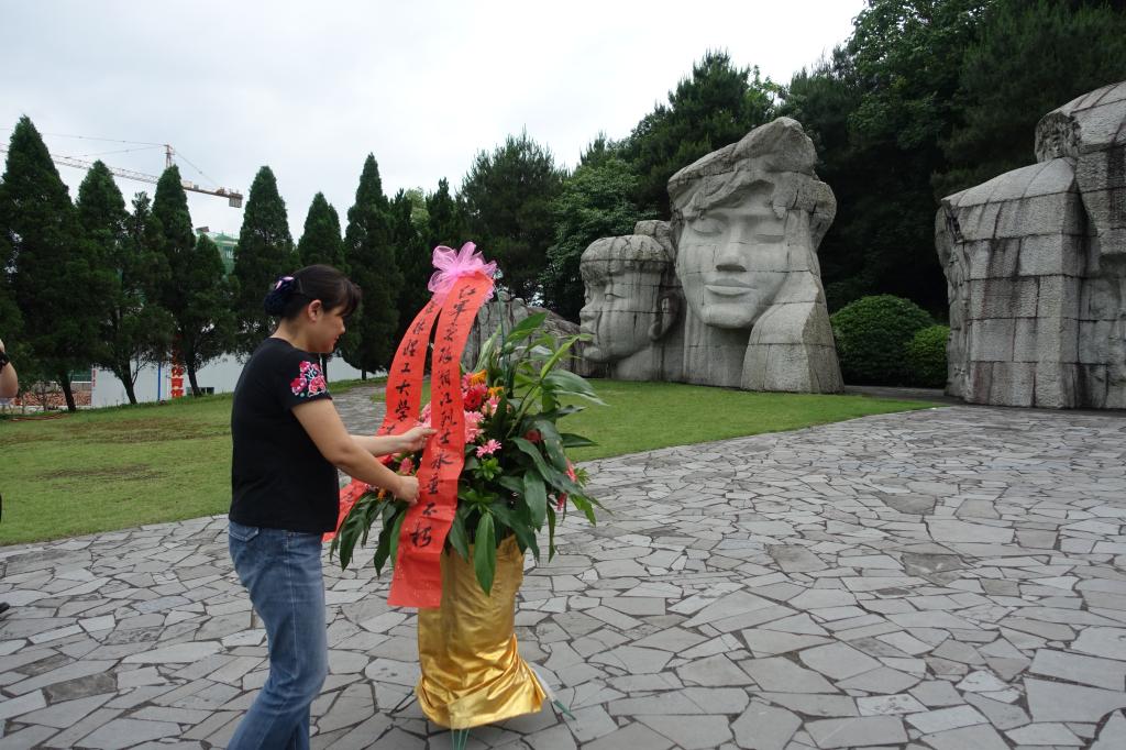 在碑园的大型群雕前,教工党员们怀着崇敬的心情向红军先烈敬献花篮,并深深地三鞠躬,表达对革命先辈的崇高敬意和无限追思。之后,熊英书记讲话,她说,红军突破湘江是一场血与火、生与死、存与亡的较量,湘江战役的成功为我们树立了一座精神丰碑。今天实地参观烈士碑园,不仅是对革命先烈的缅怀和追忆,更是要通过回顾历史,让大家懂得今天幸福生活的来之不易,强化责任担当,激发干事创业、奋发有为的精气神;继承和弘扬长征精神,不畏艰险、开拓进取,在学习工作中努力奉献自我,争创佳绩;明确全党开展“两学一做”学习教育的重要性,按照习近平总书记要求,争做有理想信念、有道德情操、有扎实学识、有仁爱之心的“四有”好老师。